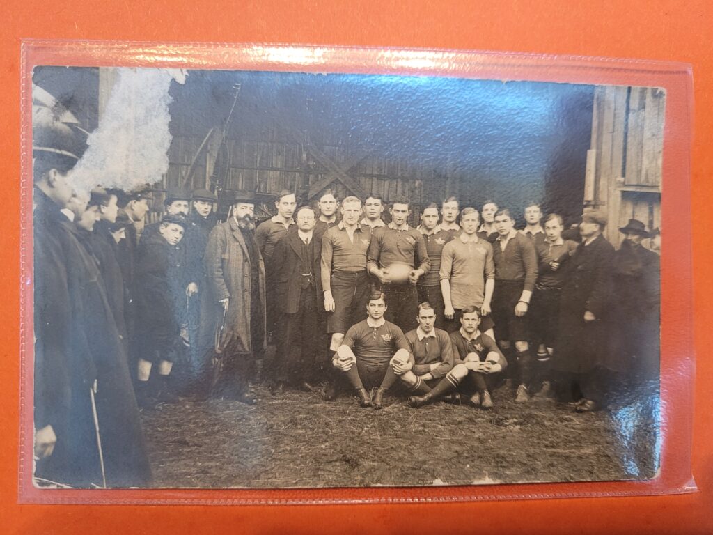 Dans la collection de cartes postales anciennes que j’ai récupérée, j’aimerai mettre un nom sur cette équipe de foot ou de rugby.