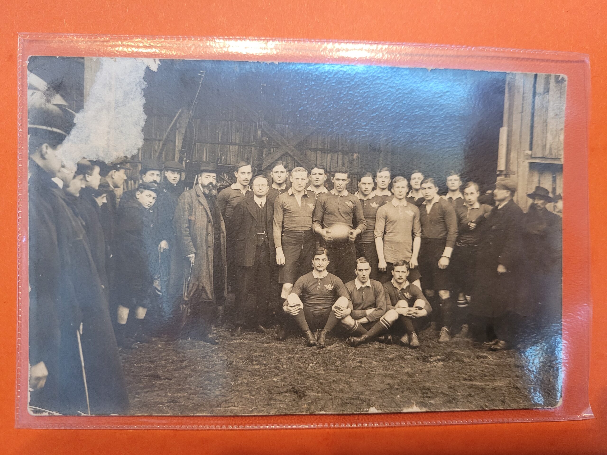 Dans la collection de cartes postales anciennes que j’ai récupérée, j’aimerai mettre un nom sur cette équipe de foot ou de rugby.