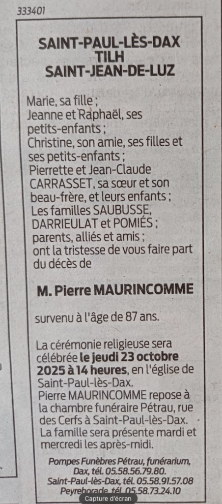 Nous apprenons le décès à 87 ans de notre ami Pierre MAURINCOMME, un ancien du BEC, du rugby et un homme de culture.
