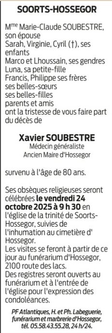 Eleve au lycée de Talence, Xavier Soubestre a pratiqué le rugby mais surtout l’athlétisme au Bec, nos archives mentionnant son passage avec un titre de champion de France junior du 4 x 100 mètres en 1964 avec ses copains Munier, Egarius et Mouquet.